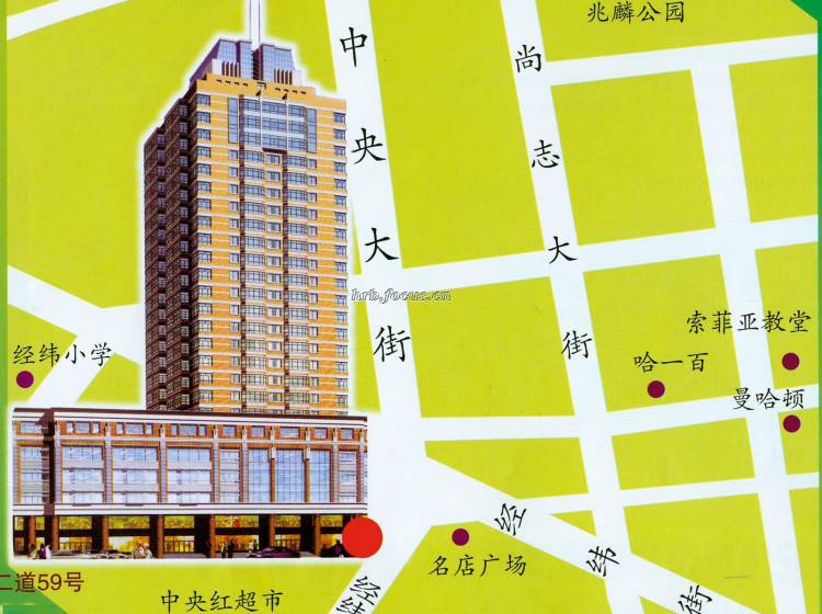 可以步行到中央大街,到学校、到菜市场到大商场、医院 花店 等非常方便。