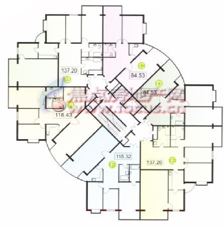 优胜美地一层六户高层住宅,舒适性智能化兼备,同时考虑邻里交流与私密性需求;室室采光通风,动静分区合理;套型功能完善,休闲厅,贮藏室,衣帽间等一应具备;运用外飘窗,弧型景观阳台,空中花园等流行建筑元素。