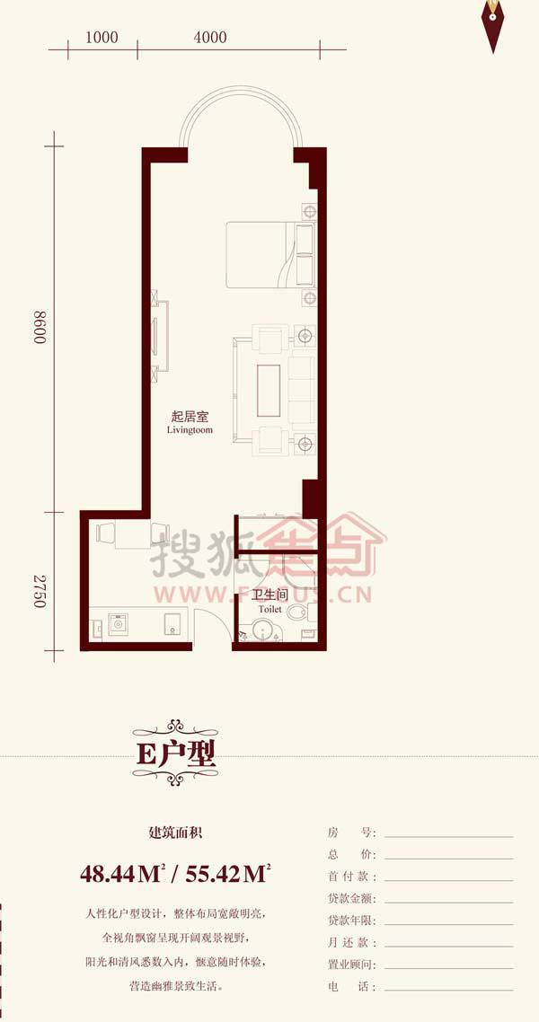 1室1厅1卫-曼哈顿国际48.44-55.42㎡ E