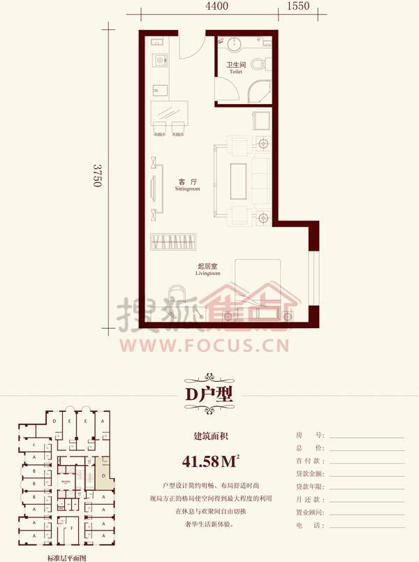 1室1厅1卫-曼哈顿国际41.58㎡ D