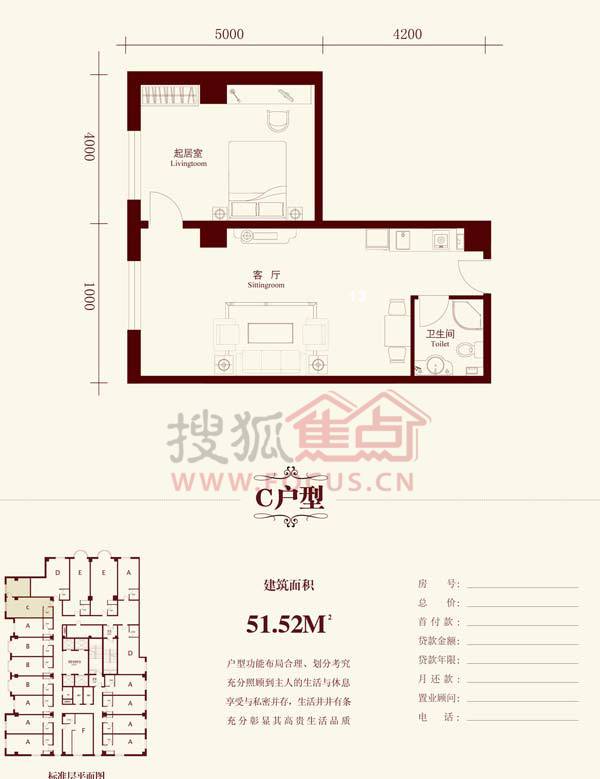 1室1厅1卫-曼哈顿国际51.52㎡ C