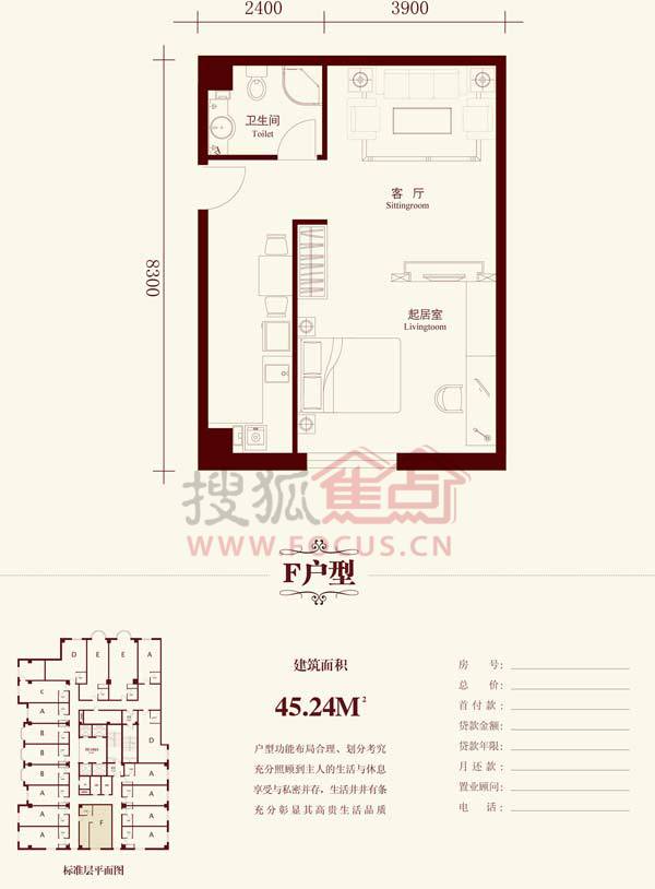 1室1厅1卫-曼哈顿国际45.24㎡ F