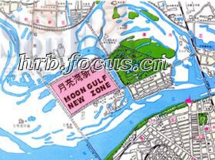 月亮湾新区位于松花江公路大桥北端200米,东临太阳岛,北有金水河、虎园,西于哈黑公路连接。新区占地187公顷,规划面积160.1公顷,功能区建设面积88公顷。整个小区地势平坦,地下水资源丰富,交通便利,是发展旅游、渡假、游乐、经贸事业的黄金宝地,是两岸繁荣的一颗明珠。月亮湾经过三年建设,2.75公里的路堤和排水泵站等防洪排涝工程已全面完成,起步区已达到“五通一平”(供水、排水、电力、通讯、道路通;场地平)。