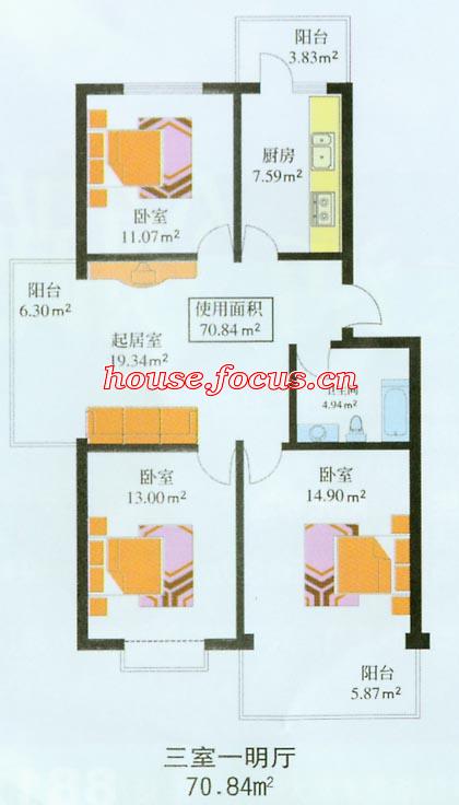 0室-禹舜嘉园三期3室1厅 70.84平方米