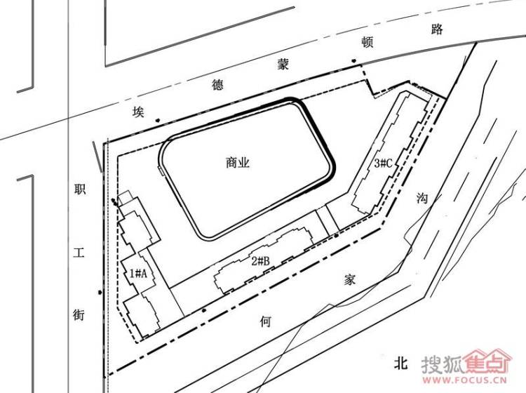 由二环康安路段进入埃德蒙顿路,直行约1.5公里至职工街路口即可达到项目。