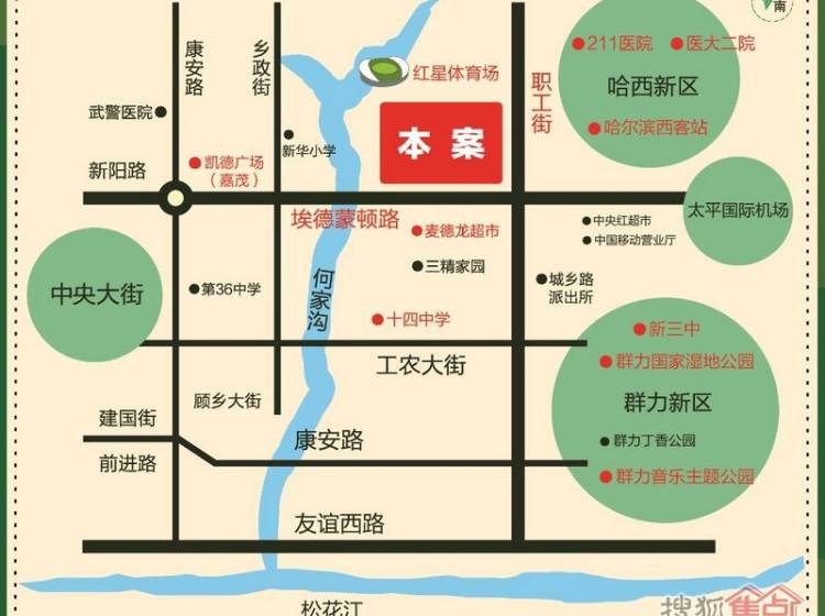 湖景春晓南侧由职工街可由道里区直达哈西客站及哈西万达广场。从湖景春晓出发,沿职工街北行一个街区即可畅享十二大主题公园、远大购物中心、家乐福超市、金中环商业街等群力新区新生代全面生活配套。