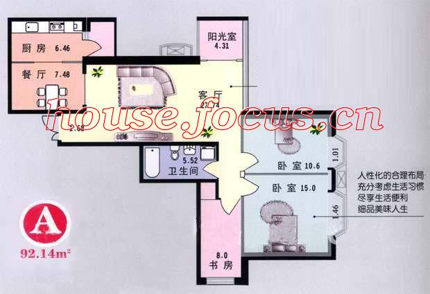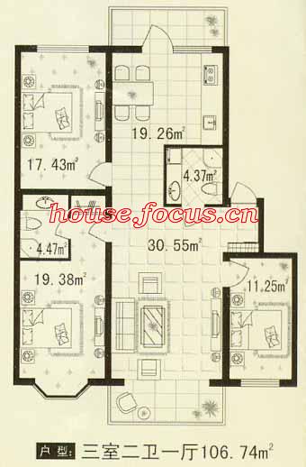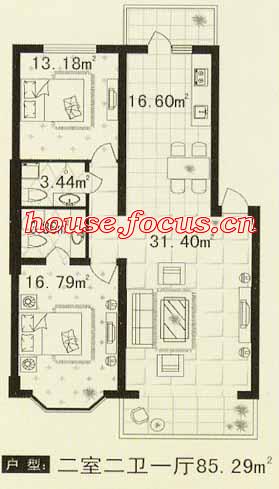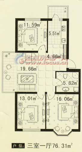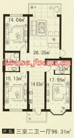 0室-海富山水文园 3室1厅1卫1厨 90.14平方米