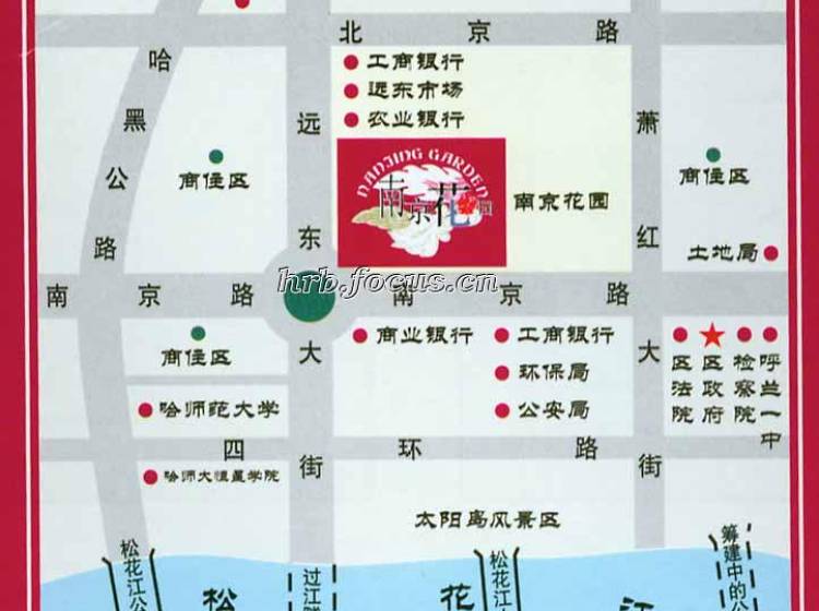 南京花园小区位于江北利民开发区南京路,小区斜对面即呼兰区政府、法院、检察院,是江北利民新兴起的政治中心。呼兰一中及各所大专院校、企事业单位环绕四周,又是新的经济中心。新松花江大桥和过江隧道也即将启动,未来升值空间不可限量。。