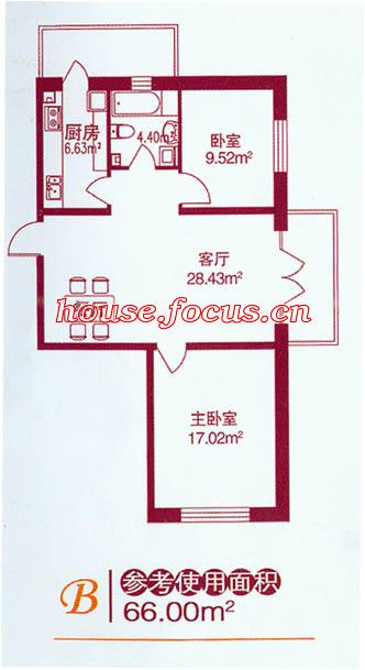 2室1厅1卫-西典家园 两室一厅 66平方米