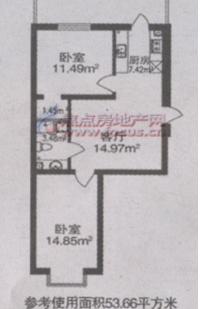 2室1厅1卫-西典家园 二室一厅 53.66平方米