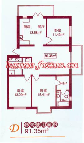 3室1厅2卫-西典家园 三室一厅 91.35平方米