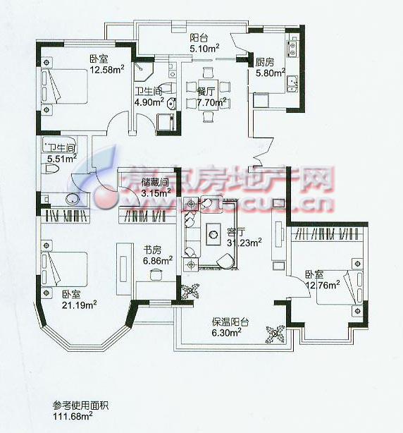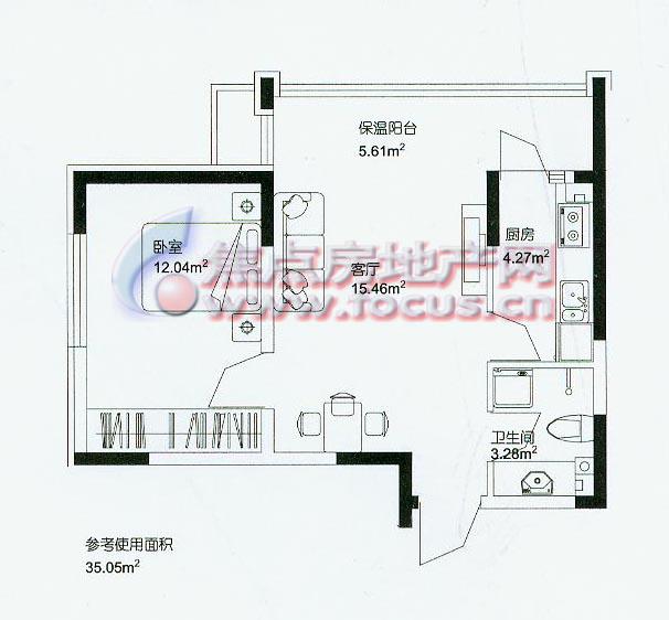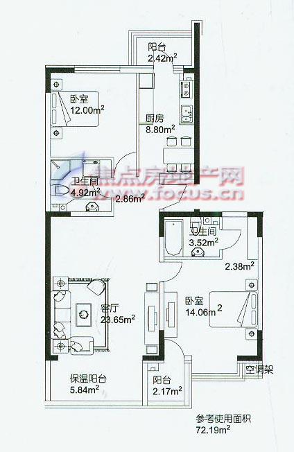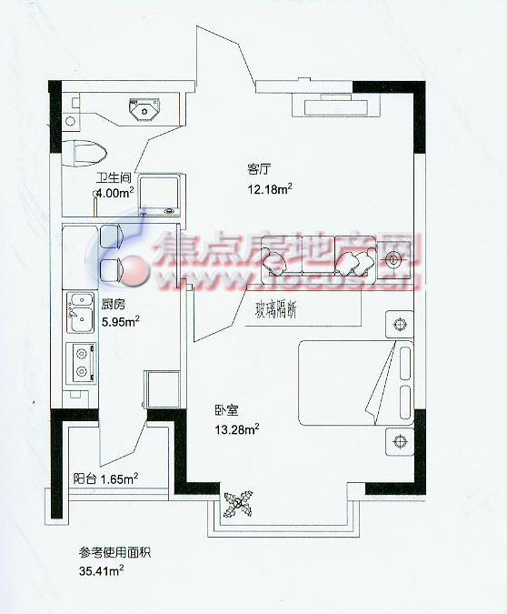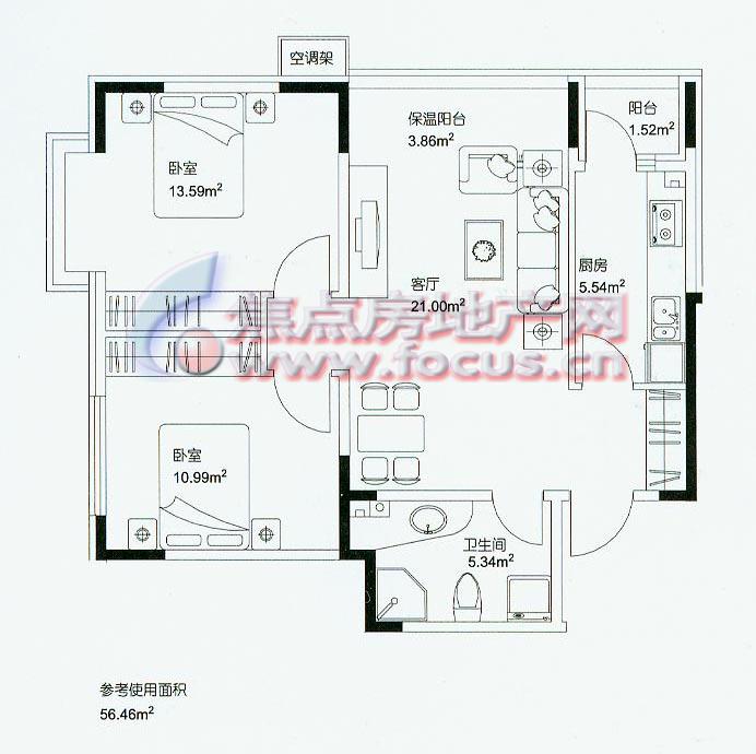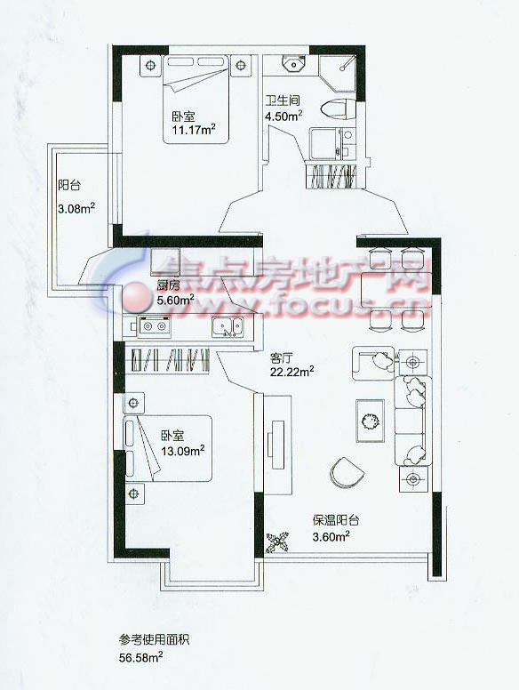 2室1厅1卫-上和城两室一厅一厨一卫56.22平方米