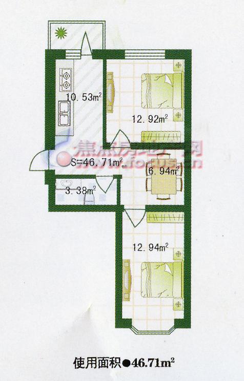 2室1厅1卫-美丽人家两室一厅34.33㎡