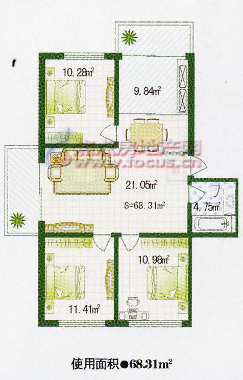 3室1厅1卫-美丽人家三室一厅68.31㎡