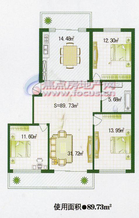 3室1厅1卫-美丽人家三室一厅89.73㎡