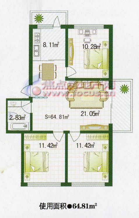 3室1厅1卫-美丽人家三室一厅64.81㎡