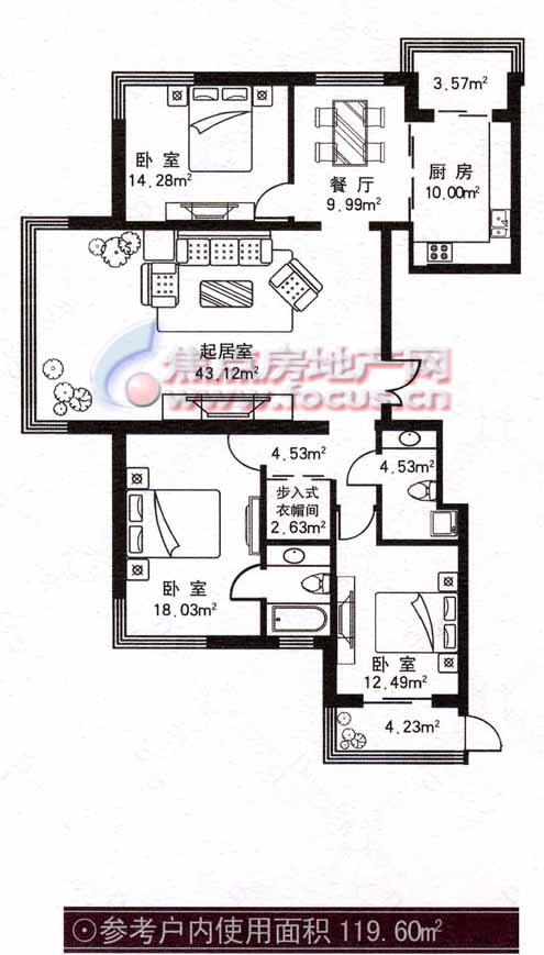 3室3厅2卫-东升江畔三室三厅119.60㎡
