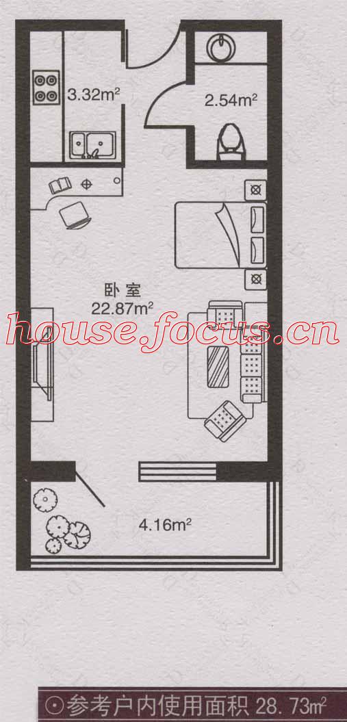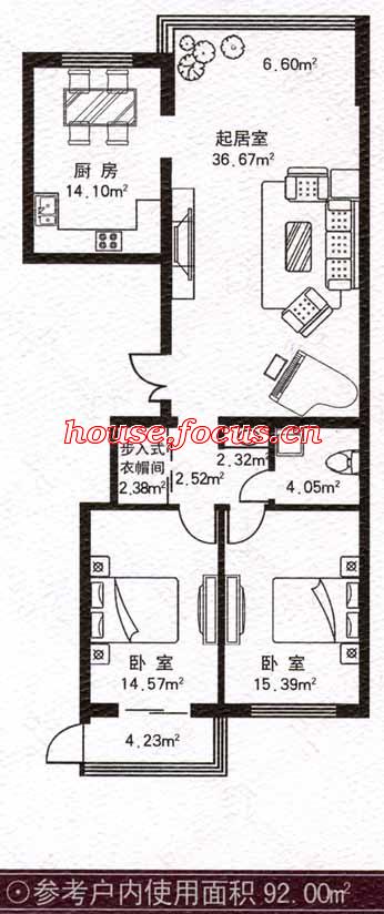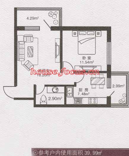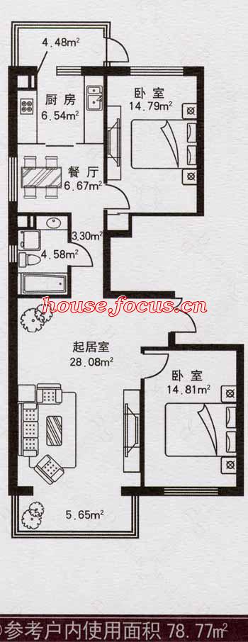 2室1厅1卫-东升江畔二室一厅121.52㎡