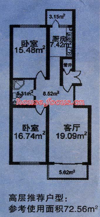 2室1厅1卫-果园星城二期72.19㎡