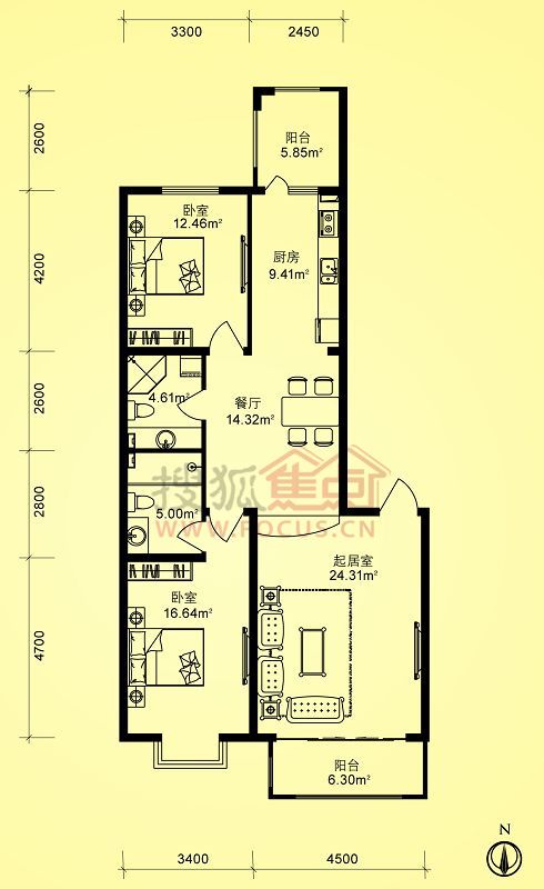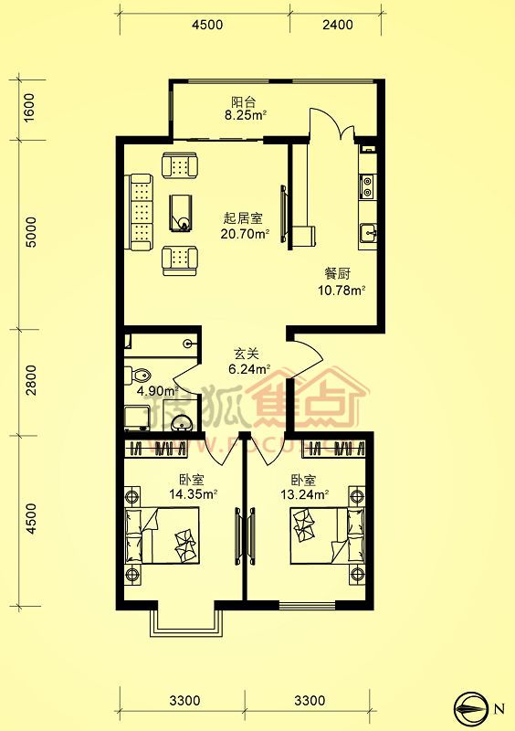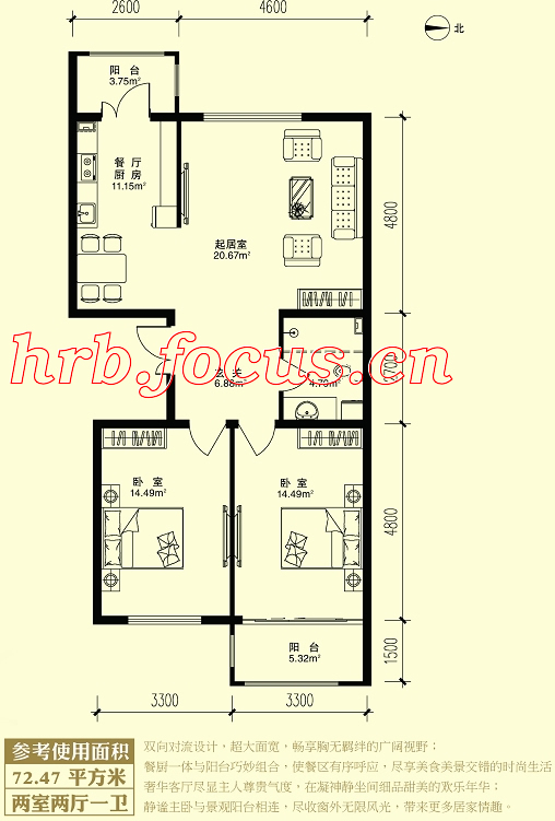 2室2厅1卫-海富金棕榈两室两厅一卫72.47㎡
