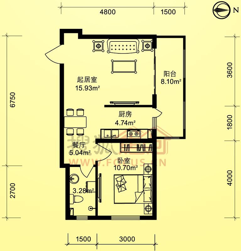 1室2厅1卫-海富金棕榈一室两厅一卫35.67㎡