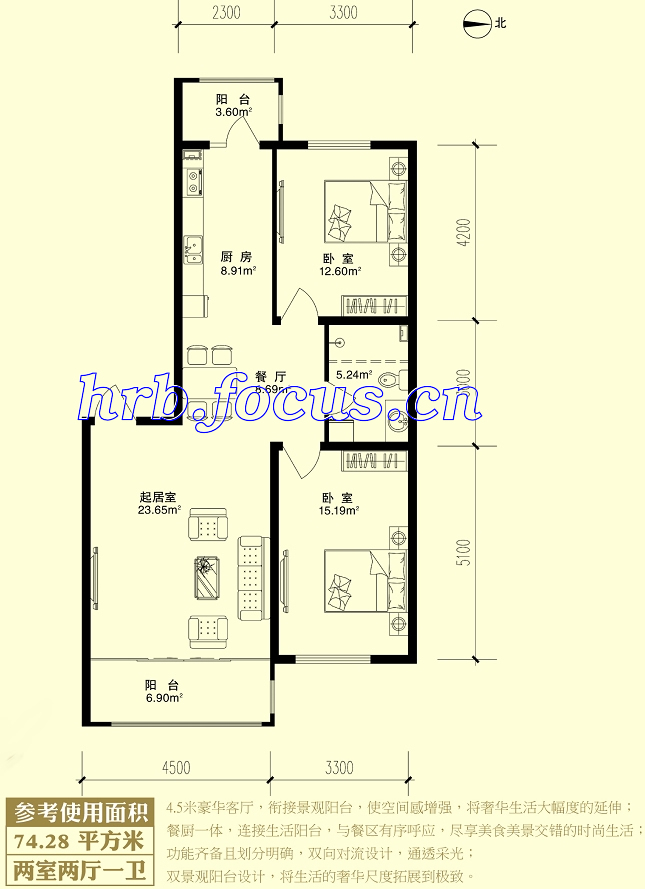 2室2厅1卫-海富金棕榈两室两厅一卫74.28㎡