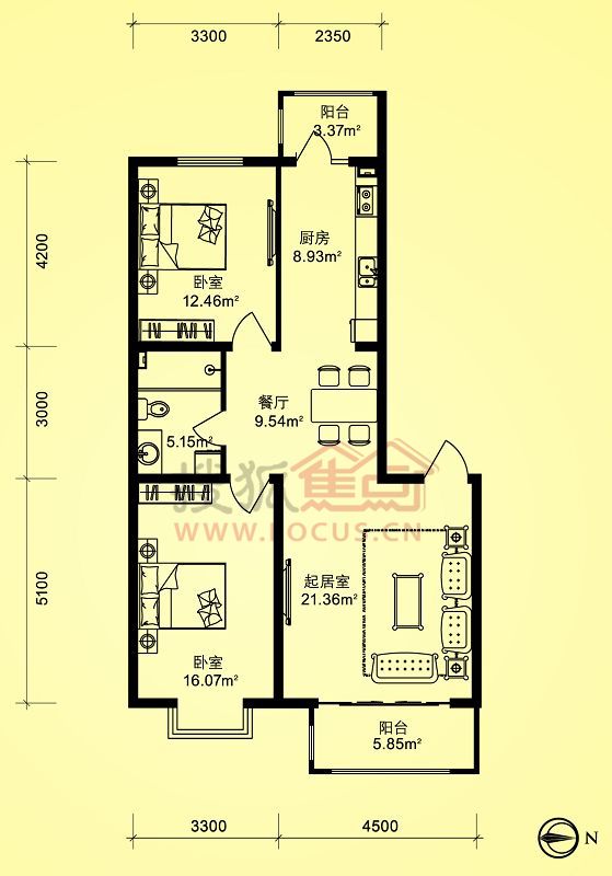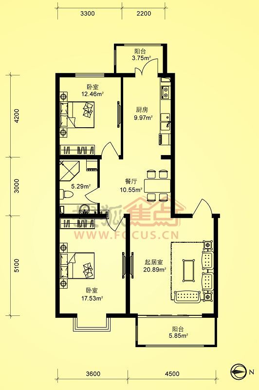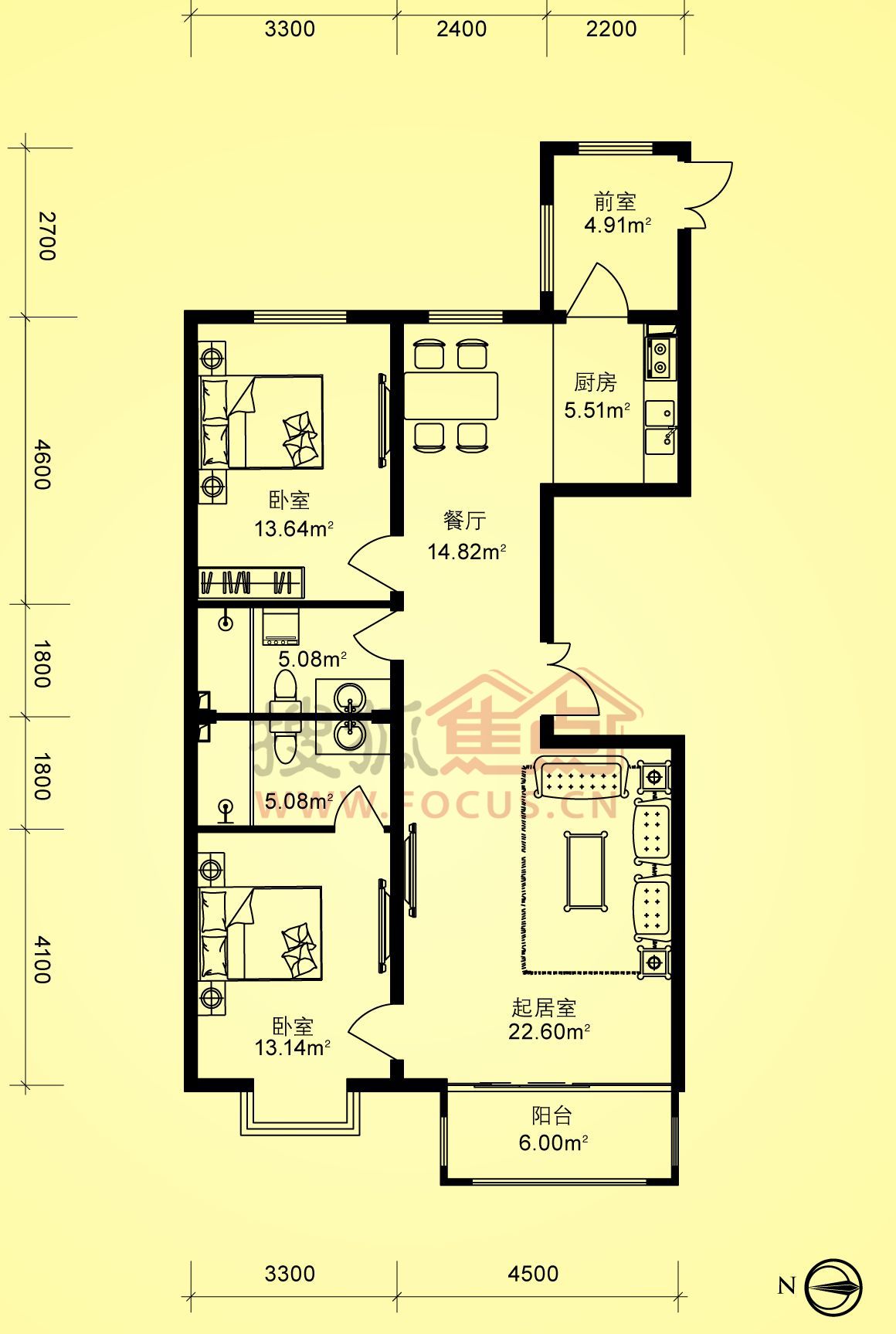 2室2厅2卫-海富金棕榈两室两厅两卫86.75㎡