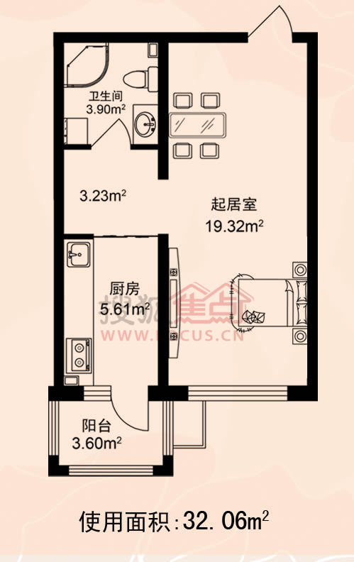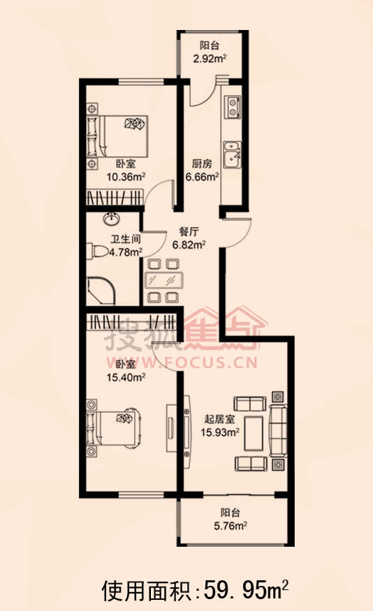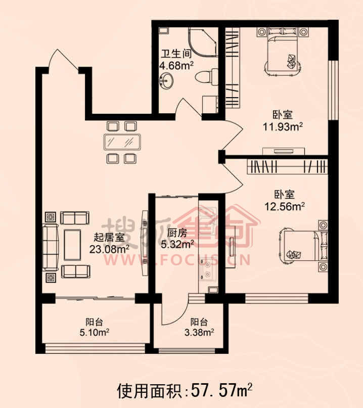 1室1厅1卫-1号楼、2号楼、4号楼54.2平米一居