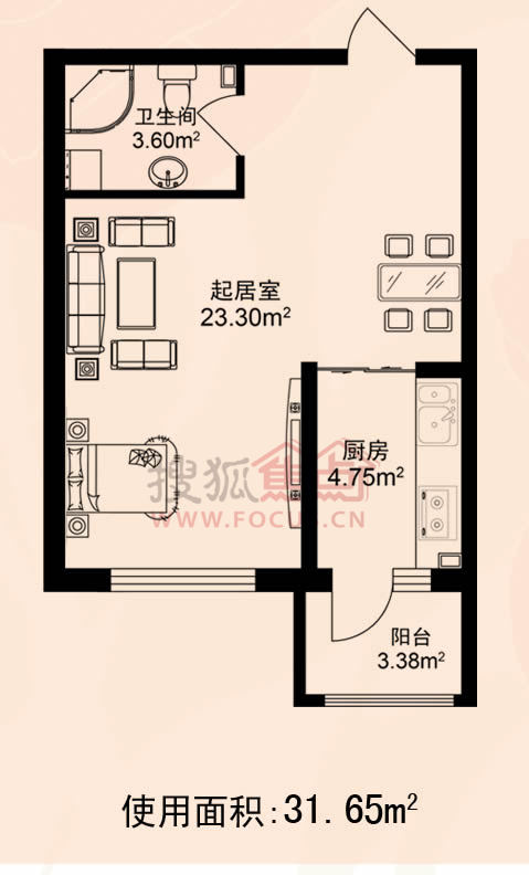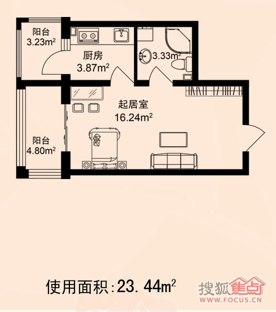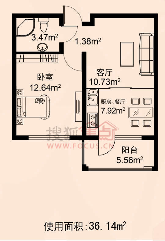 1室1厅1卫-1号楼、2号楼47.5平米一居