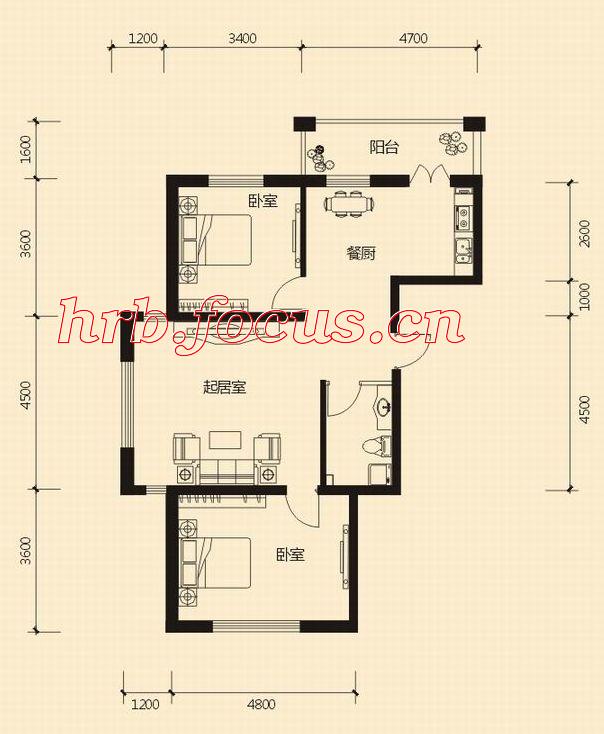 2室2厅1卫-47#B6 二室两厅70.16㎡