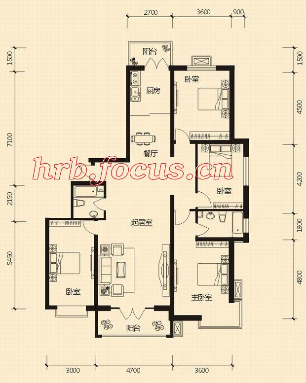 4室2厅1卫-45,46#D 四室两厅129.05㎡