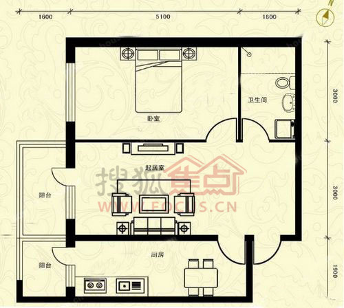 1室1厅1卫-福宏名城一室一厅一卫建筑面积40.77㎡