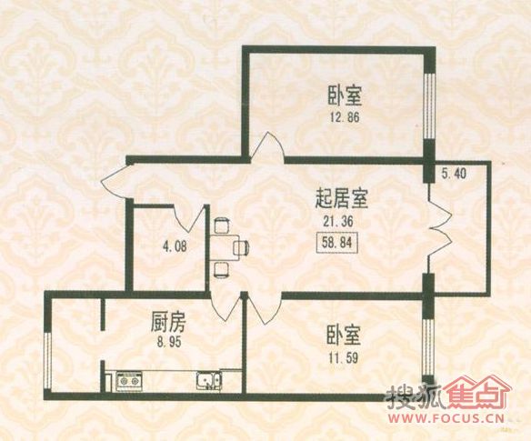 2室1厅1卫-福宏名城户型三2室1厅1卫使用面积58.84㎡