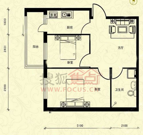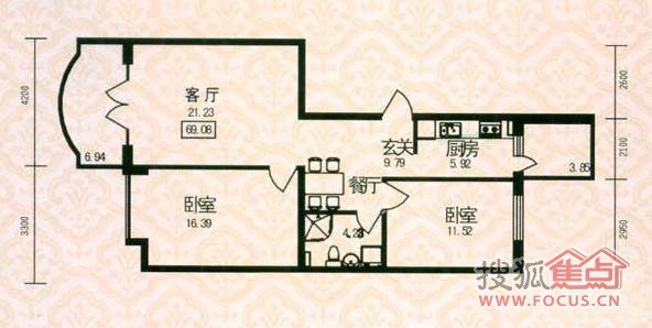 2室1厅1卫-福宏名城户型九2室1厅1卫使用面积69.08㎡
