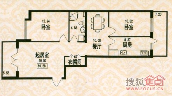 2室2厅1卫-福宏名城户型八2室2厅1卫使用面积69.28㎡
