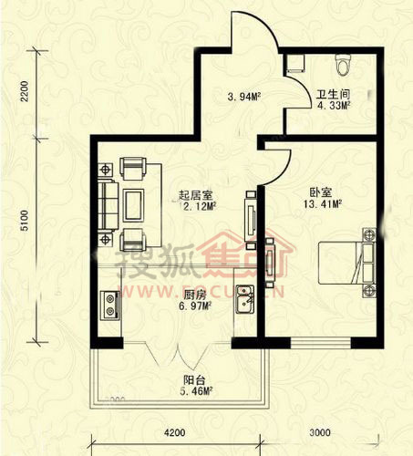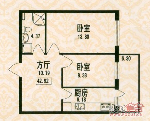 2室1厅1卫-福宏名城户型四2室1厅1卫使用面积42.92㎡
