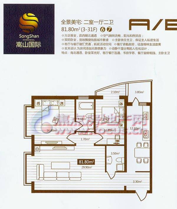2室1厅2卫-嵩山国际81.80㎡二室一厅二卫