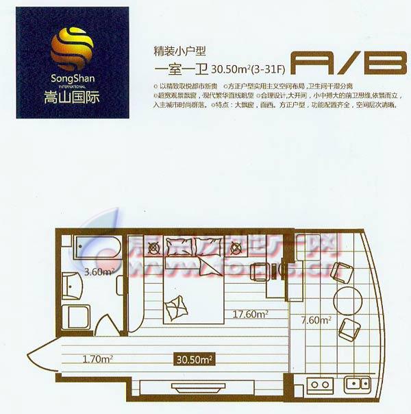 1室1卫-嵩山国际30.50㎡一室零厅一卫