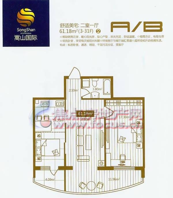 2室1厅1卫-嵩山国际61.18㎡二室一厅一卫