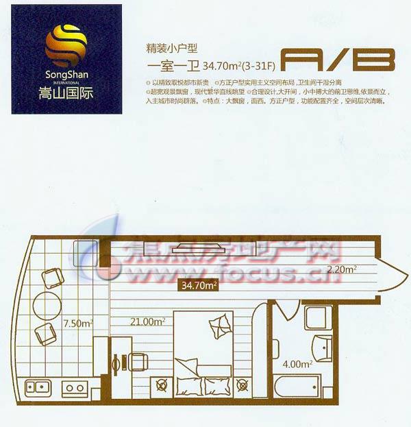1室1卫-嵩山国际34.70㎡一室零厅一卫