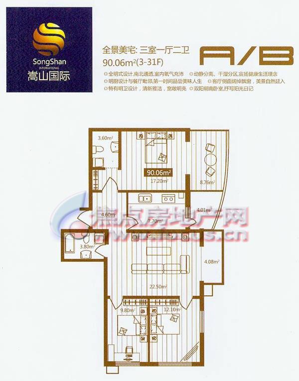 3室1厅2卫-嵩山国际90.06㎡三室一厅二卫