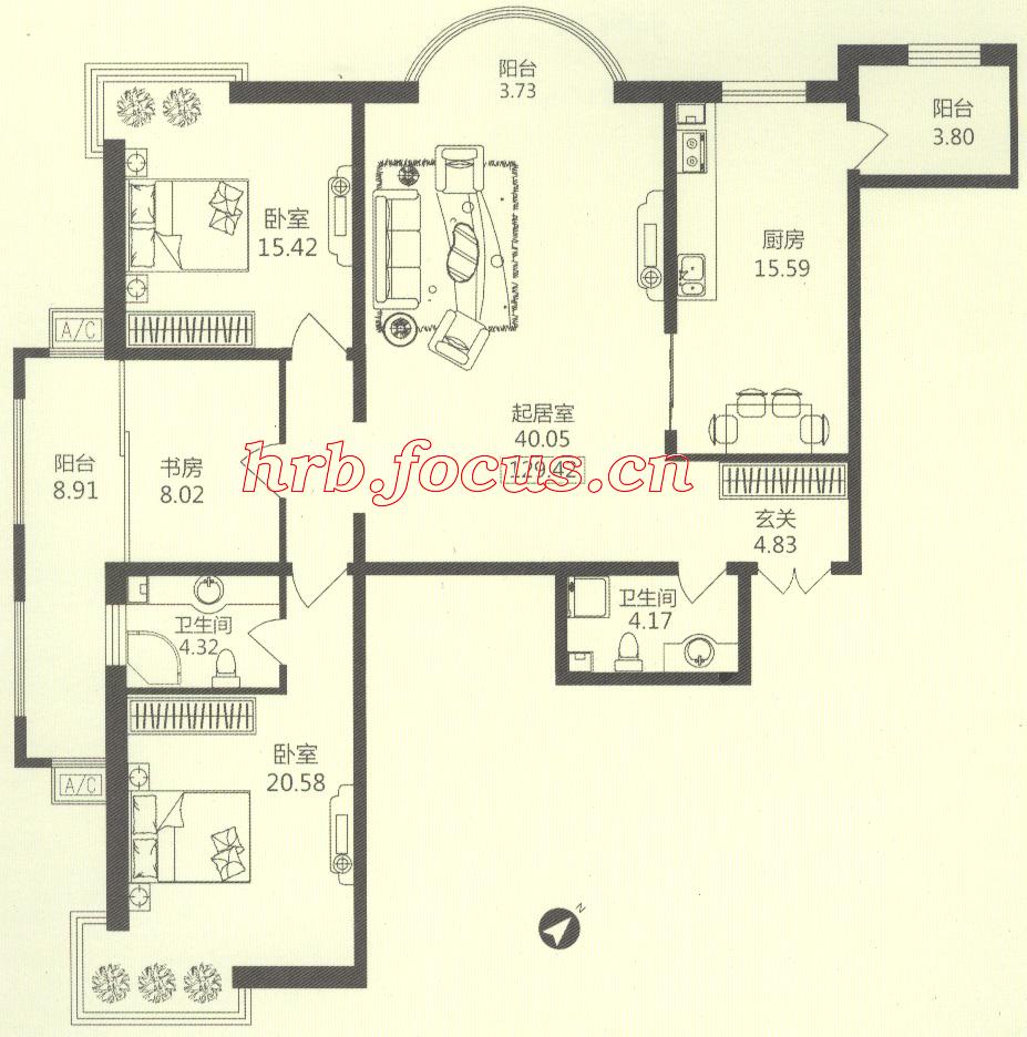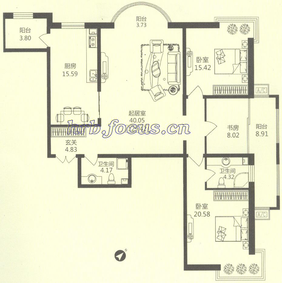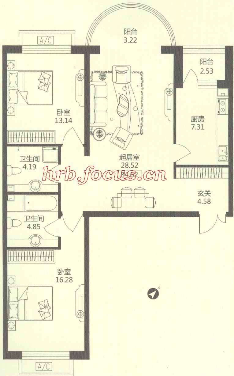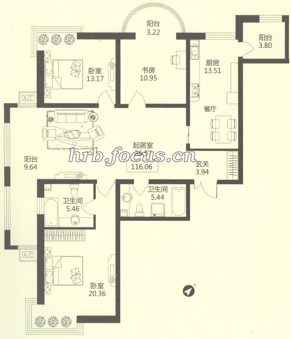 3室1厅2卫-华风海城湾1#楼2单元04 116.06㎡户型