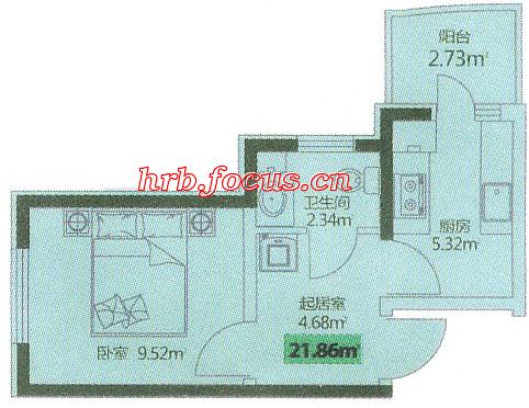 1室1卫-宏伟华轩一室21.86㎡