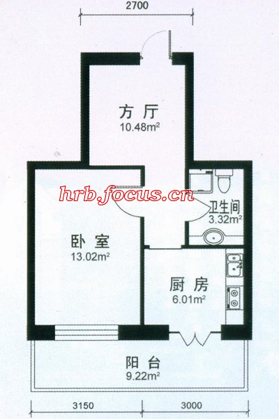 1室1厅1卫-黎明家园一室一厅32㎡户型