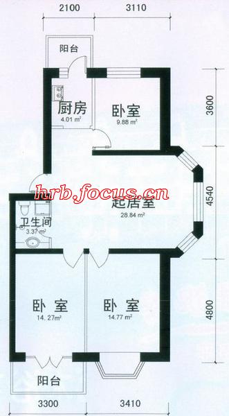 3室1厅1卫-黎明家园三室一厅75㎡户型
