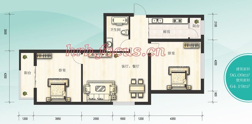 建面96.09m²