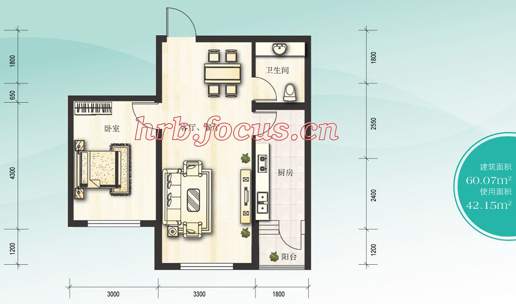 建面60.07m²