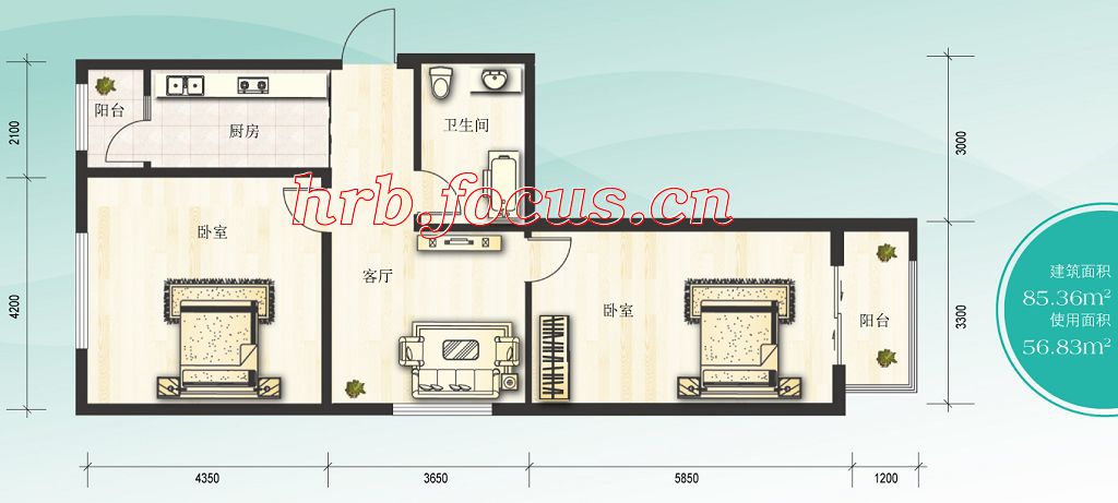 2室1厅1卫-水木兰亭两室一厅一卫56.83㎡