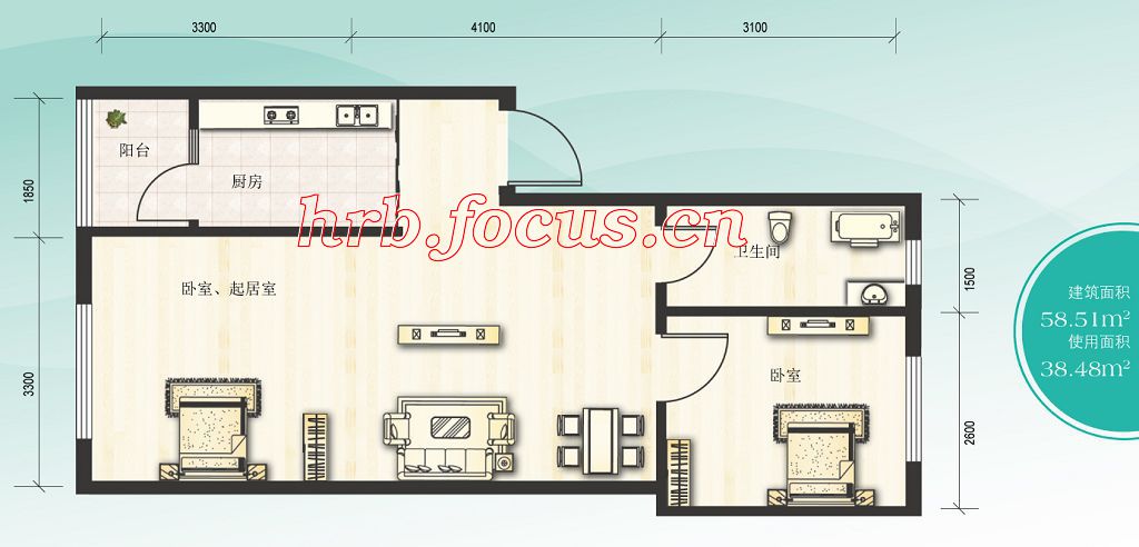 建面58.51m²