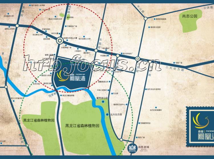 周边环境:凤凰湾项目正南面,仅一道之隔的国家森林植物园,占地136万公顷,栽种上千种国内外珍稀树种,同时中国远大生态园,黛秀公园,也环绕项目东向,西向是东北林业大学实验林场和哈尔滨花卉大市场。数以万计的绿植,使此区域更加适宜人居。